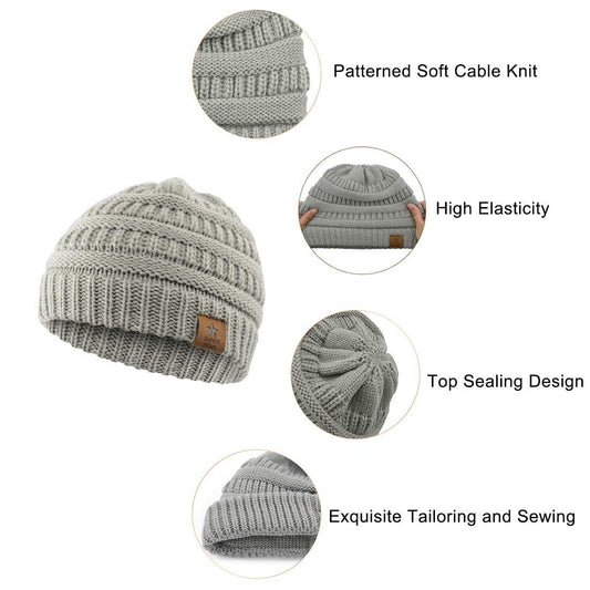 Kids warm and cozy Winter Hat Set - Black, White & Light Grey