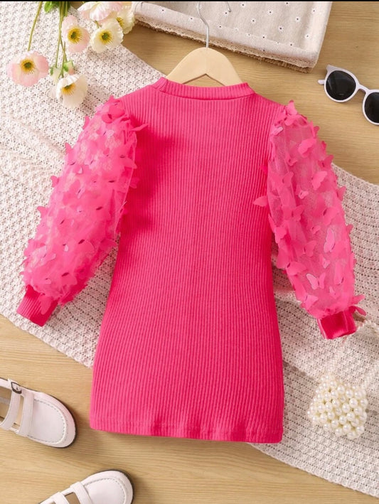 Pretty in Pink Butterfly Mesh Sleeves Dress 💖